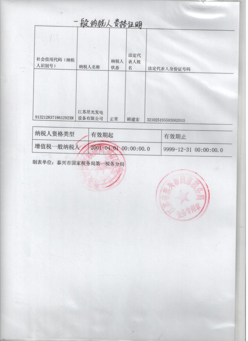 一般納稅人資格證明