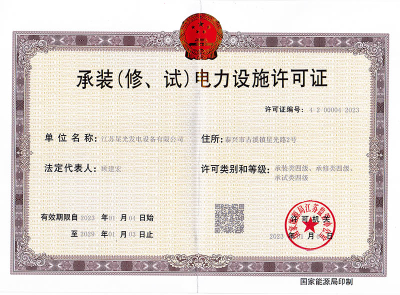 承裝(修、試)電力施工許可證正本