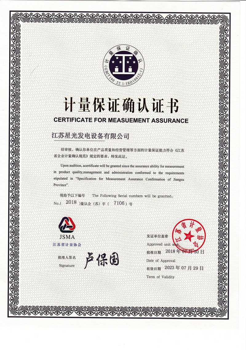 計量保證確認(rèn)證書
